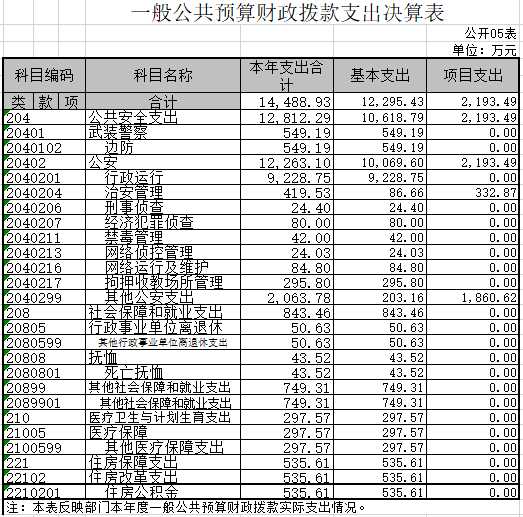 五、一般公共預(yù)算財(cái)政撥款支出決算表