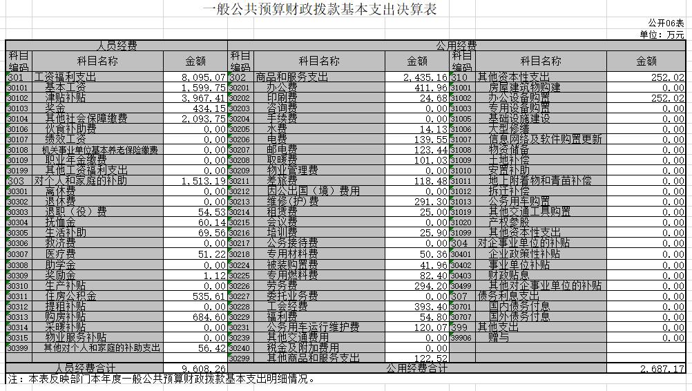 2016年度一般公共預(yù)算財(cái)政撥款基本支出決算12295.43萬元,包括人員經(jīng)費(fèi)和公用經(jīng)費(fèi),支出具體情況如下: