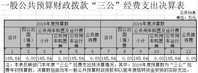 十四、“三公”經(jīng)費(fèi):指省級部門用財(cái)政撥款安排的因公出國(境)費(fèi)、公務(wù)用車購置及運(yùn)行費(fèi)和公務(wù)接待費(fèi)。其中,因公出國(境)費(fèi)反映單位公務(wù)出國(境)的差旅費(fèi)、伙食補(bǔ)助費(fèi)、雜費(fèi)、培訓(xùn)費(fèi)等支出;公務(wù)用車購置及運(yùn)行費(fèi)反映單位公務(wù)用車購置費(fèi)(含車輛購置稅)及租用費(fèi)、燃料費(fèi)、維修費(fèi)、過路過橋費(fèi)、保險(xiǎn)費(fèi)等支出;公務(wù)接待費(fèi)反映單位按規(guī)定開支的各類公務(wù)接待(含外賓接待)支出。