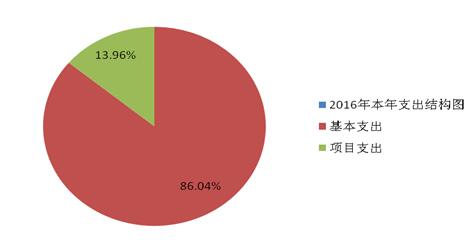 2016年度本年支出15710.02萬元,其中:基本支出 13516.53萬元,占86.04%;項(xiàng)目支出2193.49萬元,占13.96%。
