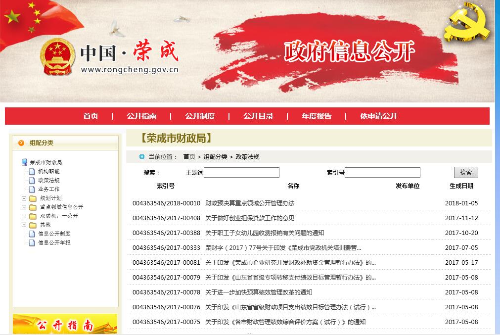 2017年,榮成市財政局接到居民提交的政府信息公開申請1條。