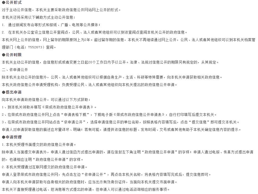 (二)強(qiáng)化了政府信息公開平臺(tái)建設(shè)。在依托榮成市政府信息公開網(wǎng)站這個(gè)平臺(tái)開展信息公開工作的同時(shí),開通榮成市民政局網(wǎng)站,加大公開力度,同時(shí)采用全時(shí)間、全業(yè)務(wù)咨詢服務(wù)方式為居民提供方便。另外,還專門在各單位業(yè)務(wù)大廳、服務(wù)窗口前設(shè)置信息公開板,向前來辦理各種業(yè)務(wù)的居民提供政策信息。