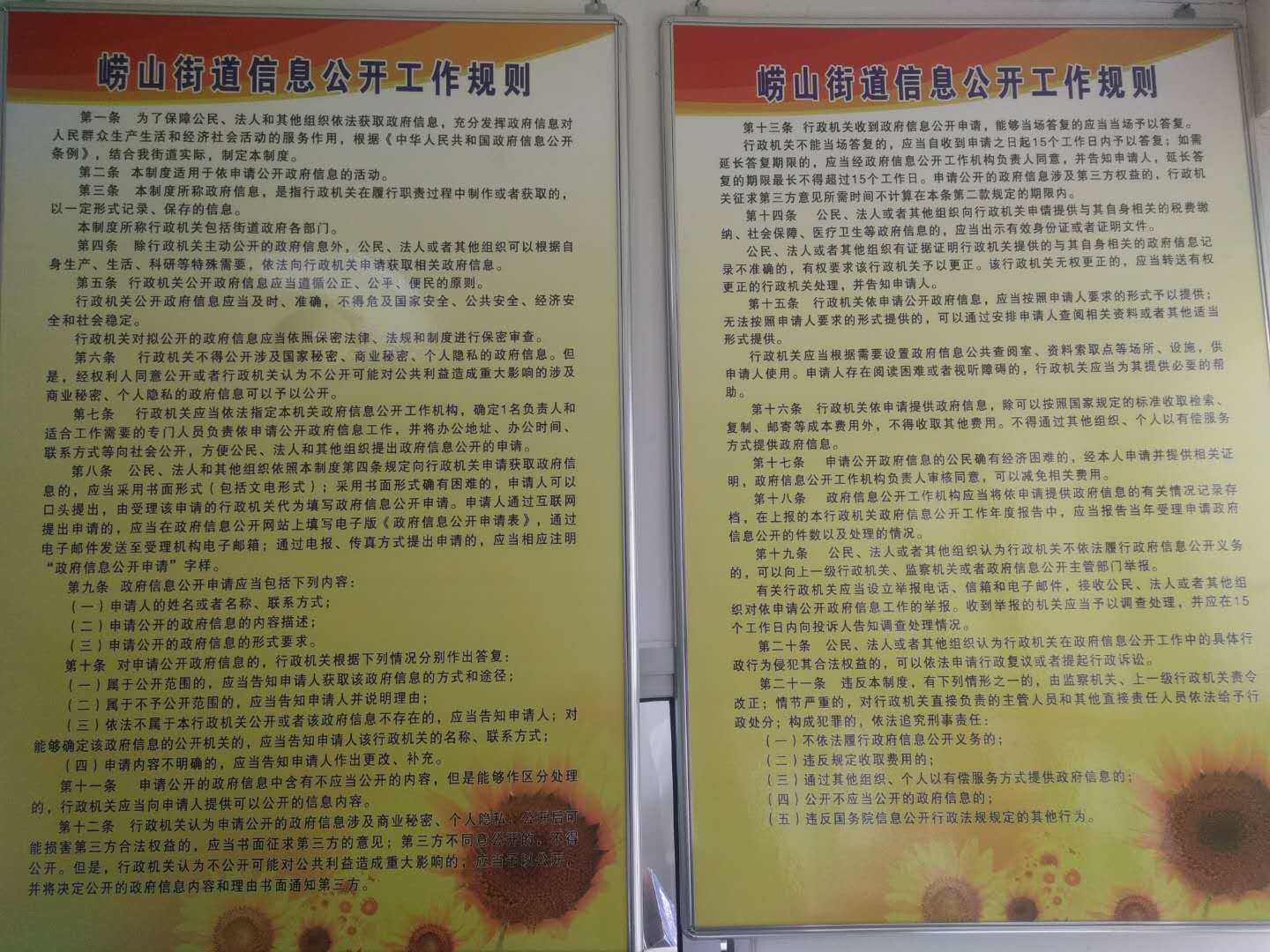 (二)進一步完善了各種規(guī)章制度。擬定了年度政府信息公開工作方案和年度工作計劃;根據(jù)工作開展情況,進一步修改完善了《榮成市嶗山街道政府信息公開制度》、《榮成市嶗山街道政府信息發(fā)布審核制度》、《榮成市嶗山街道政府信息公開社會評議制度》以及《榮成市嶗山街道信息公開工作考核制度》、《榮成市嶗山街道政府信息公開工作責任追究制度》等。
