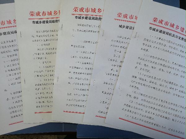 (一)進一步完善了領導體系。根據城鄉建設局黨委領導班子人員變化情況,及時調整充實了榮成市城鄉建設局信息公開工作領導小組成員,確保組織健全;局信息管理科專職負責政府信息公開事宜,配備專職人員和辦公場所。做到了服務指南上桌、制度上墻、文件入柜,被政府辦公室確定為全市信息公開工作的示范點。