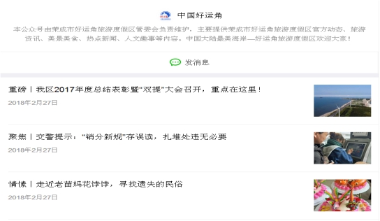 及時更新“中國好運角”微信公眾號信息,2017年度原創、轉發微信500條。