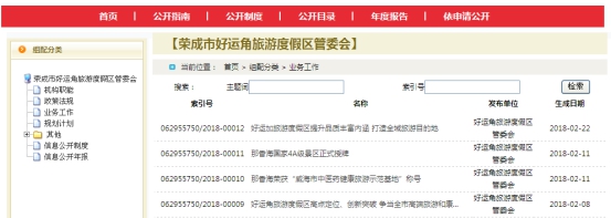 榮成好運角旅游度假區管委會所屬各單位均按照《榮成好運角旅游度假區政府信息公開工作規則》的規定,明確了政府信息公開工作領導機構及職責,嚴格按照程序履行了公開職責,做到及時、準確、全面公開。