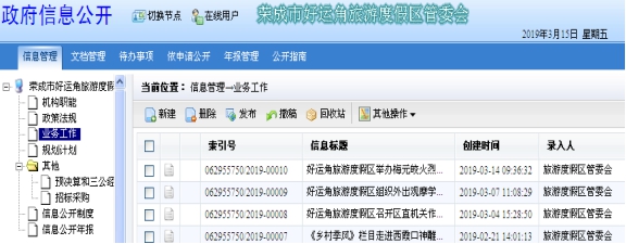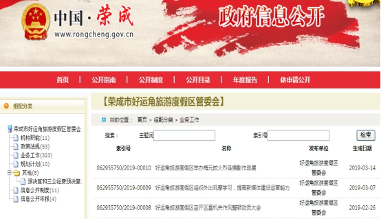 榮成好運角旅游度假區管委會所屬各單位均按照《榮成好運角旅游度假區政府信息公開工作規則》的規定,明確了政府信息公開工作領導機構及職責,嚴格按照程序履行了公開職責,做到及時、準確、全面公開。