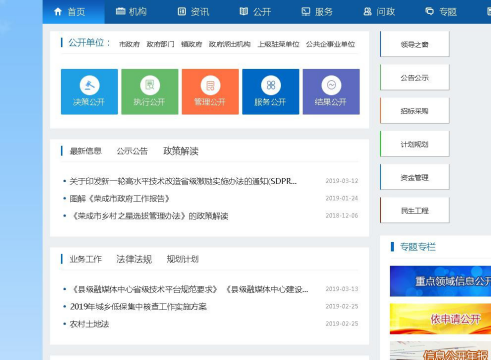 1、政府網站。榮成市政府門戶網站是榮成市政府信息公開第 一平臺。開設“重點領域信息公開”“政務公開標準化規范化試點”等專題,集中展示熱點信息。以用戶需求為導向,以融合數據、創新服務為主線,2018 年門戶網站的公開欄目進行了優化升級,使欄目更加整潔、美觀,設置“五公開”、最新公開、專題