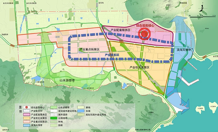 "Three zones" refers to the supporting industrial service area, the industrial optimization development area and the key industrial development area.