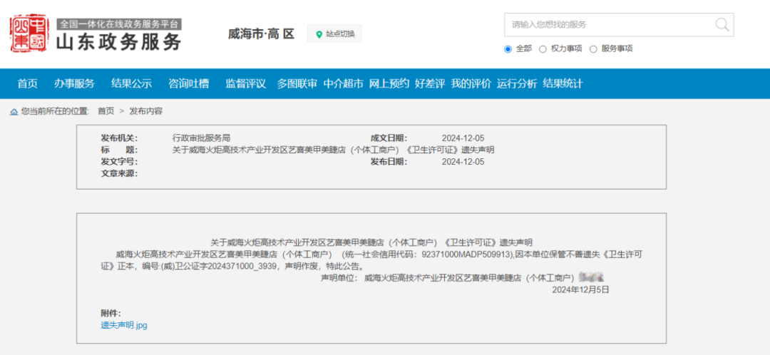 高區(qū)行政審批服務(wù)局從企業(yè)和群眾辦事需求出發(fā),立足“高效辦成一件事”,在高區(qū)政務(wù)服務(wù)網(wǎng)通知公告欄開(kāi)通“許可證遺失聲明”發(fā)布途徑,推行許可證遺失“電子化公告+補(bǔ)換證”一件事,為企業(yè)和群眾提供更加便捷高效的增值服務(wù)。