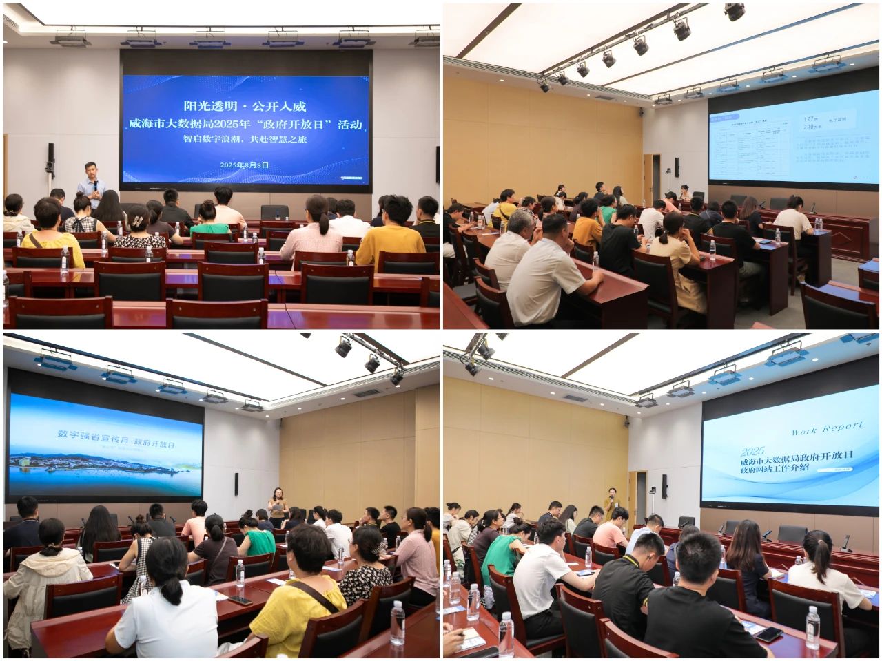 為深入推進政務公開,增強政府工作透明度,搭建政民互動橋梁,8月8日上午,威海市大數據局舉辦2025年“政府開放日”活動。活動以“智啟數字浪潮,共赴智慧之旅”為主題,邀請社區居民代表、基層工作人員及媒體記者等30余人,近距離體驗數字政府建設成果,互動交流應用體會和服務需求。