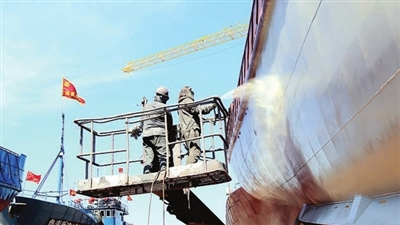 8月15日,在遠(yuǎn)通船舶修造有限公司,工人在進(jìn)行漁船噴漆作業(yè),一批維修的漁船進(jìn)入收尾階段,即將交付客戶。