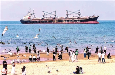 三年前,這片海灘因這艘巨輪意外走紅,游客量從之前的每年不足10萬人次暴漲到800萬人次。